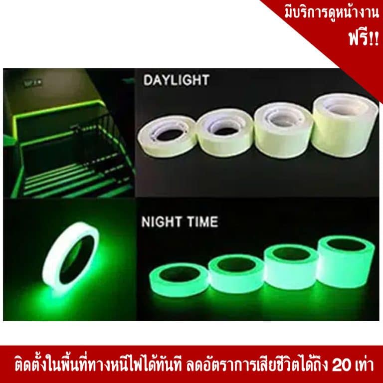 - เทปเรืองแสง Fluorescent Tape ดูดซับแสงในตอนกลางวัน และ เรืองแสงได้ดีในตอนกลางคืน ประมาณ 2 ชั่วโมง