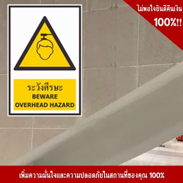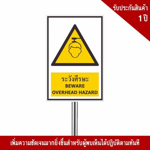 - ป้ายระวังศรีษะ อลูมิเนียม หนา 1.2 mm. 20×30 Cm. 3M Safety Grade (รับประกัน 1 ปี)