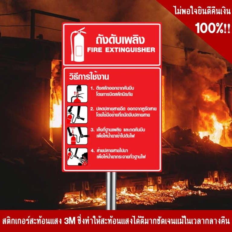 ป้ายวิธีใช้ถังดับเพลิง เพิ่มสัญลักษณ์ที่โดดเด่น และความชัดเจน ลดอุบัติเหตุในสถานที่ได้ถึง 10 เท่า!!