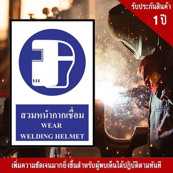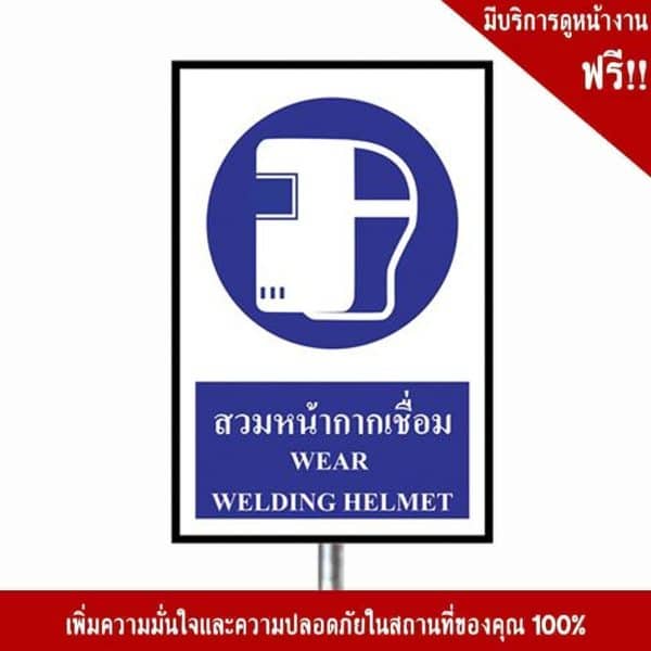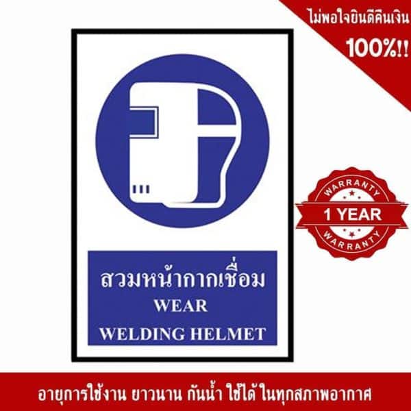 ป้ายสวมหน้ากากเชื่อม อลูมิเนียม หนา 1.2 mm. 20×30 Cm. 3M Safety Grade (รับประกัน 1 ปี)