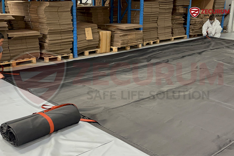 – ผ้าใยแก้ว (Fiberglass Fabric) เคลือบสารหน่วงไฟทั้งสองด้าน - ขนาด: 2.8 x 4 เมตร