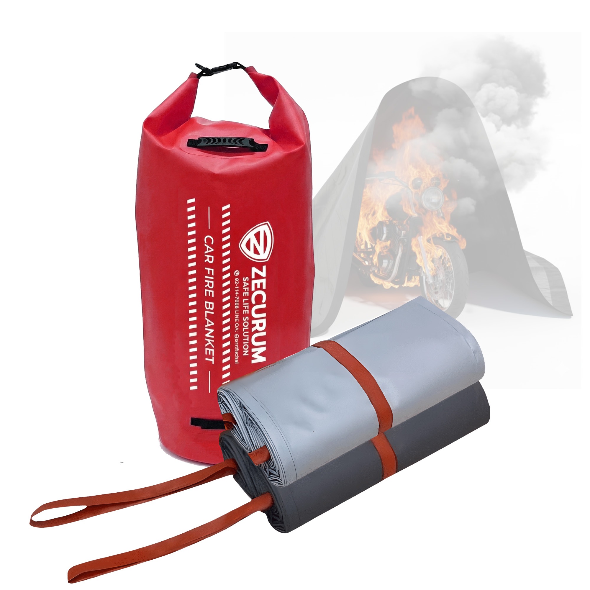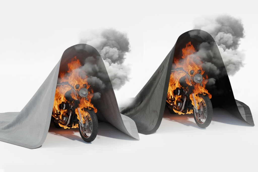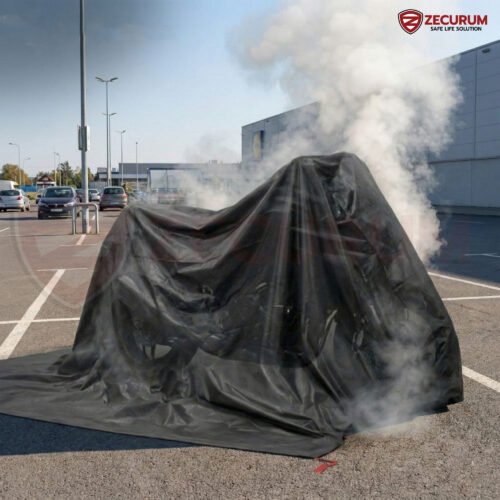 ผ้าคลุมรถดับไฟ ZECURUM สำหรับรถมอเตอร์ไซต์ – มาตรฐานยุโรป EN13501-1 รับประกัน 10ปี หยุดการลุกลาม ดับไฟได้ทันที