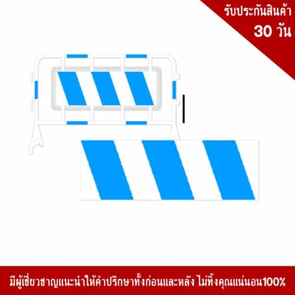 แผงกั้นจราจร 1 เมตร สีฟ้า-ขาว พร้อมป้ายอลูมิเนียม 1.2 มม. สติ๊กเกอร์สะท้อนแสง 3M Engineer Grade 30×60 cm. แถบฟ้า-ขาว