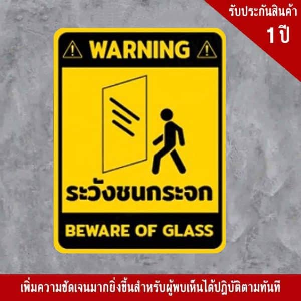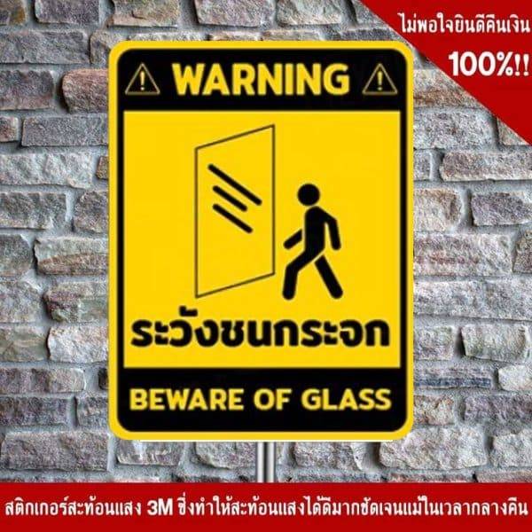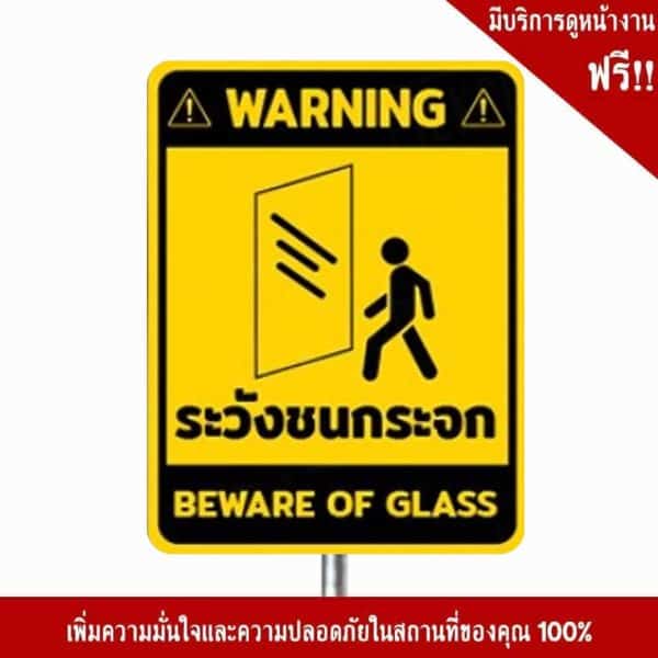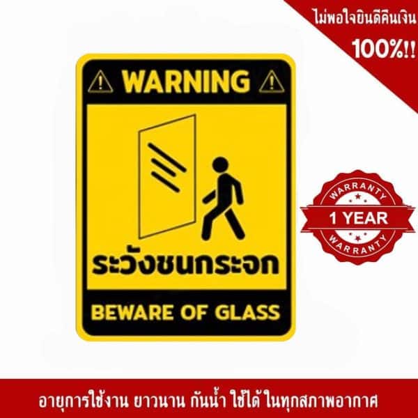 - ป้ายระวังชนกระจก อลูมิเนียม หนา 1.2 mm. 20×30 Cm. 3M Safety Grade (รับประกัน 1 ปี)