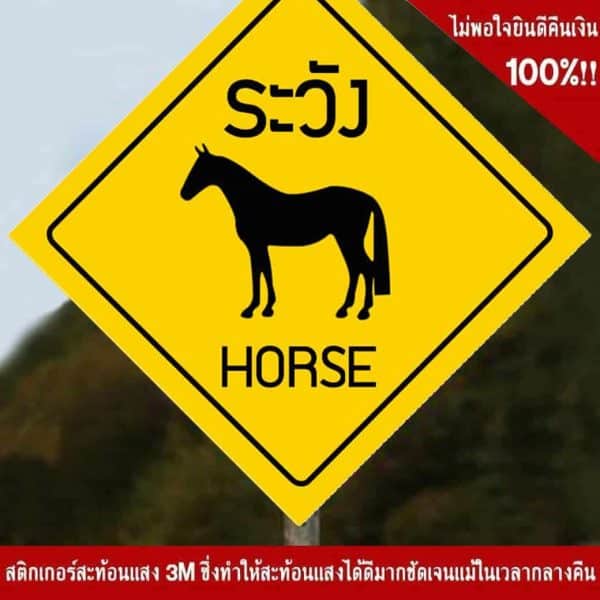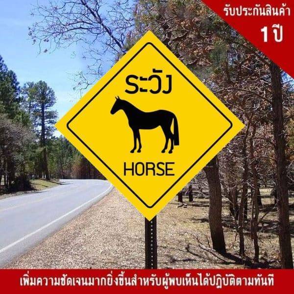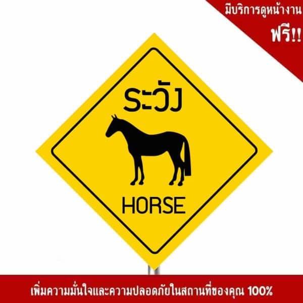 - ป้ายระวังม้า อลูมิเนียม หนา 1.2 mm. 45×45 Cm. 3M Safety Grade (รับประกัน 1 ปี)