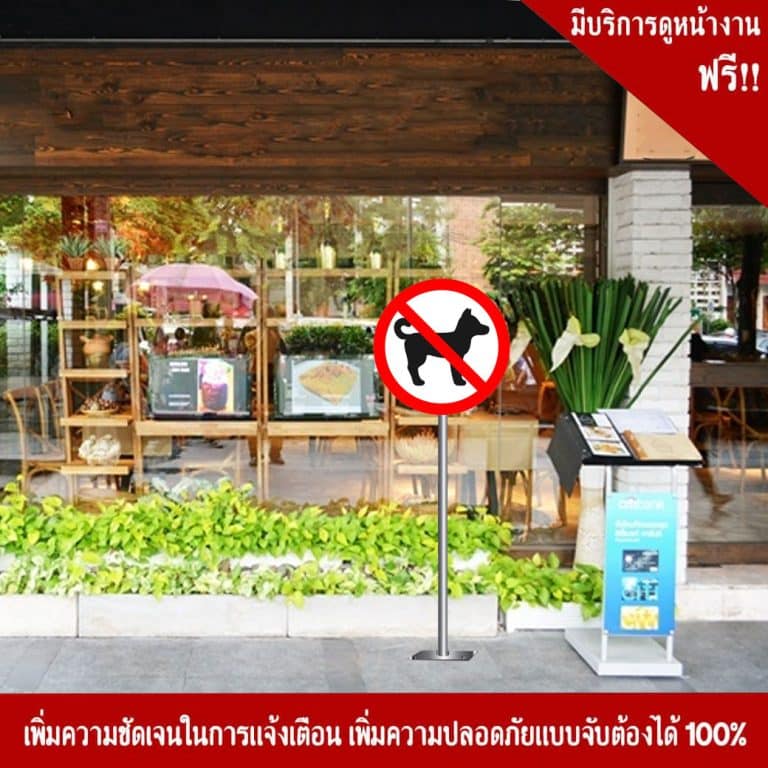 ป้ายห้ามนำสัตว์เลี้ยงเข้า เหล็กซิ้งค์หนา 1 mm. 45×45 Cm. 3M Safety Grade (รับประกัน 1 ปี)