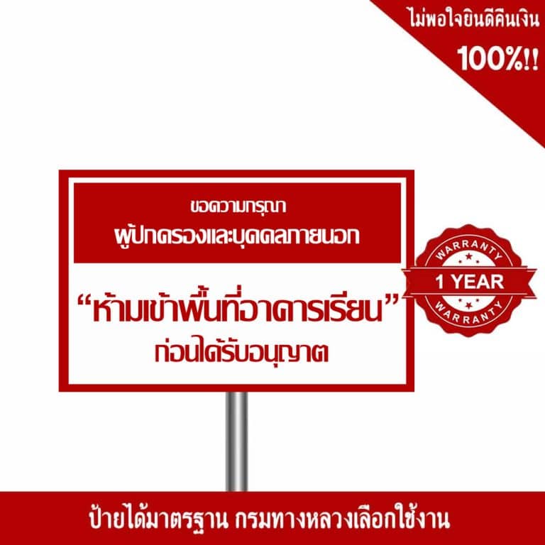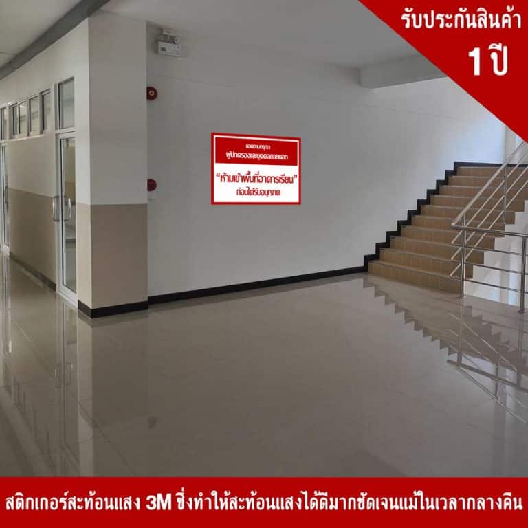 ป้ายห้ามเข้าพื้นที่อาคารเรียน ก่อนได้รับอนุญาต สะท้อนแสง 3M