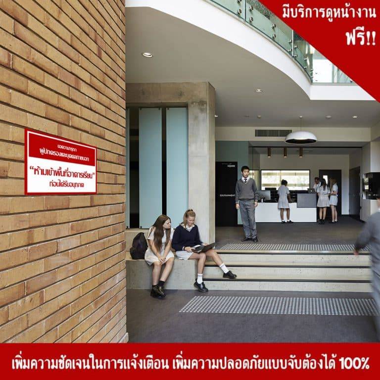 ป้ายห้ามเข้าพื้นที่อาคารเรียน ก่อนได้รับอนุญาต อลูมิเนียม หนา 1.2 mm. 20×30 Cm. 3M Safety Grade (รับประกัน 1 ปี)