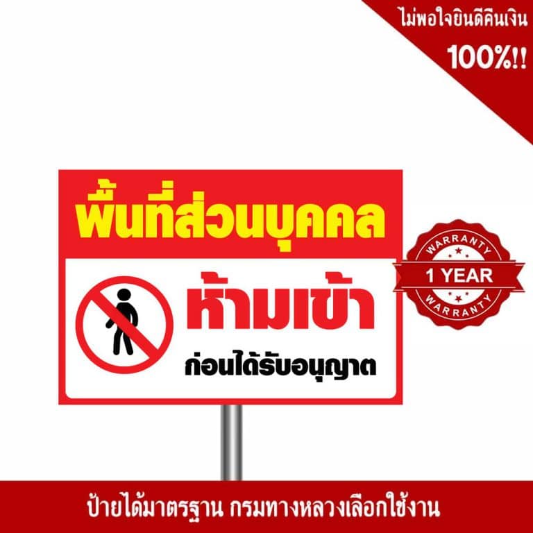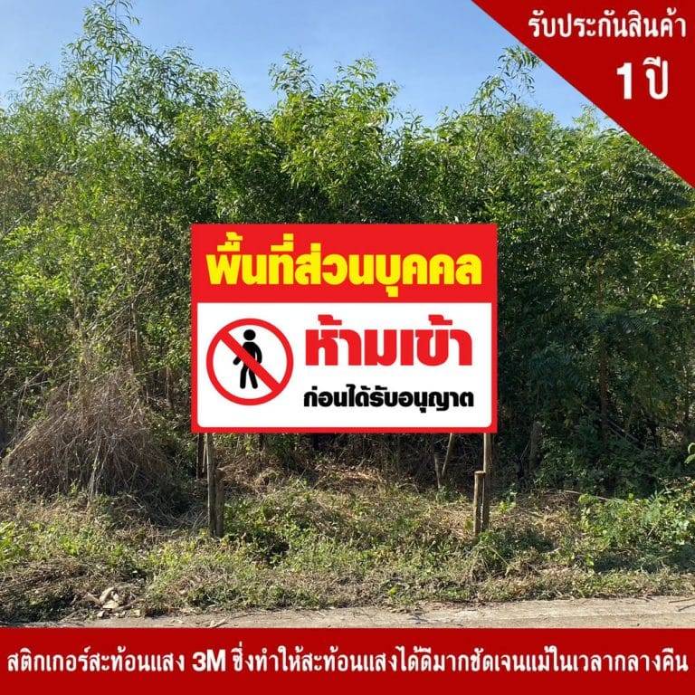 ป้ายพื้นที่ส่วนบุคคล ห้ามเข้าก่อนได้รับอนุญาต สะท้อนแสง 3M