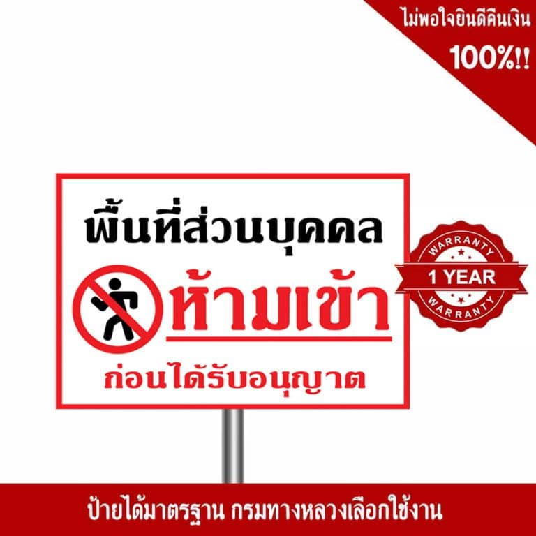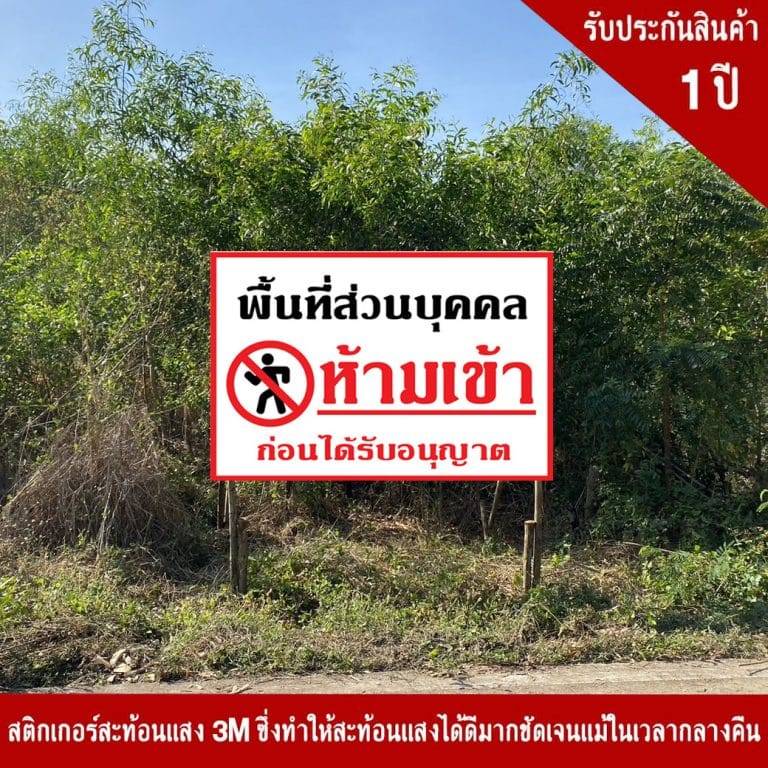 ป้ายพื้นที่ส่วนบุคคล ห้ามเข้าก่อนได้รับอนุญาต สะท้อนแสง 3M