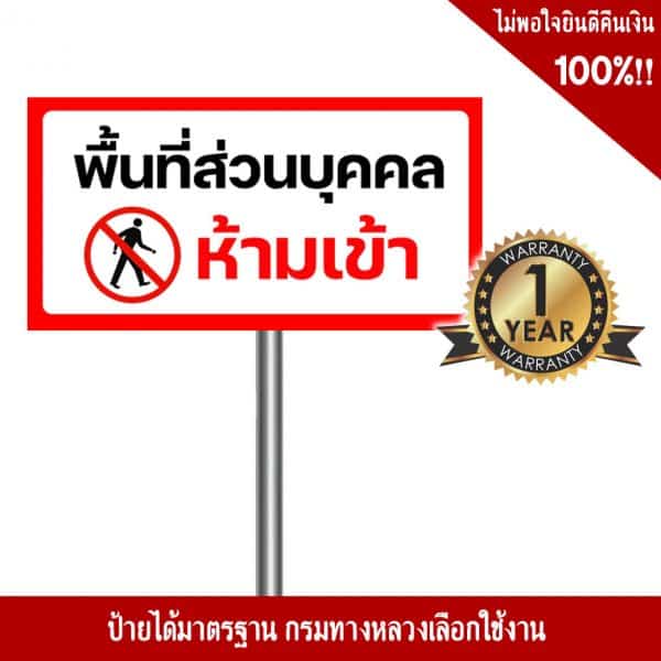 - ป้ายพื้นที่ส่วนบุคคลห้ามเข้า อลูมิเนียม หนา 1.2 mm. 20×30 Cm. 3M Safety Grade (รับประกัน 1 ปี)