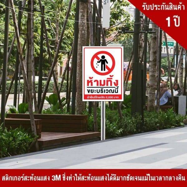 ป้ายห้ามทิ้งขยะบริเวณนี้ ฝ่าฝืนปรับ 2,000 บาท สะท้อนแสง 3M
