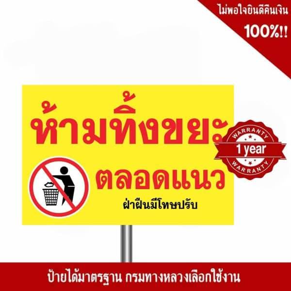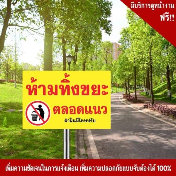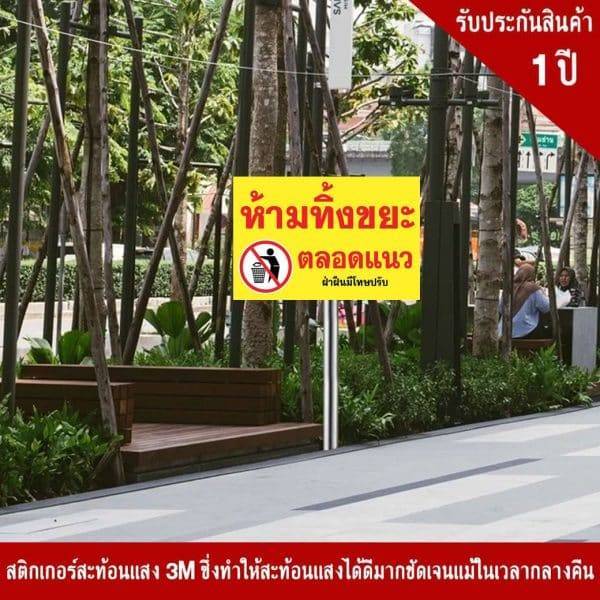 ป้ายห้ามทิ้งขยะตลอดแนว ฝ่าฝืนมีโทษปรับ สะท้อนแสง 3M
