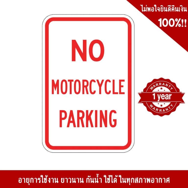 - ป้ายไม่มีที่จอดรถจักรยานยนต์ อลูมิเนียม หนา 1.2 mm. 20×30 Cm. 3M Safety Grade (รับประกัน 1 ปี)