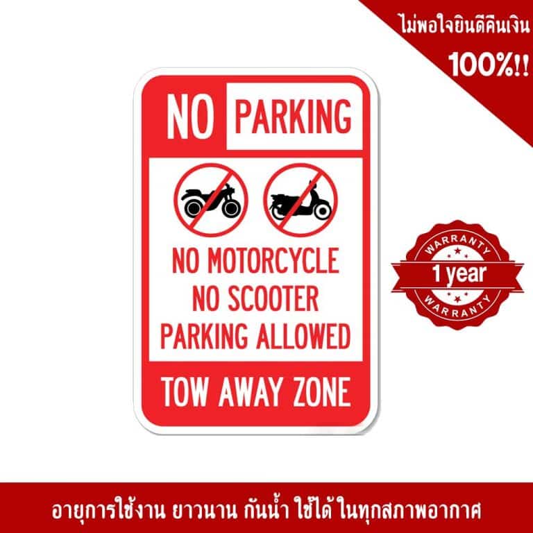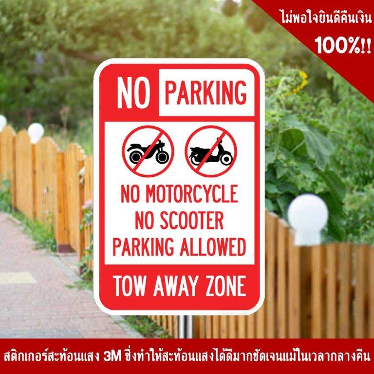 ป้ายห้ามจอดมอเตอร์ไซค์ ห้ามจอดสกู๊ตเตอร์ สะท้อนแสง 3M