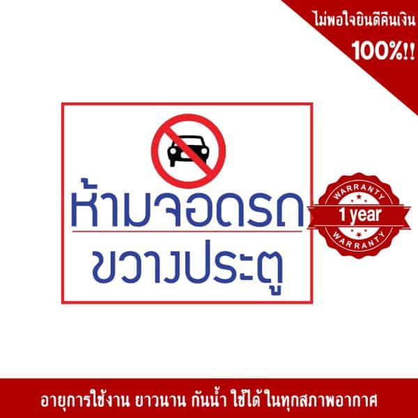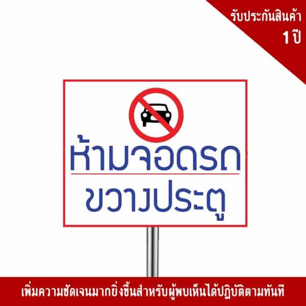 - ป้ายห้ามจอดรถขวางประตู อลูมิเนียม หนา 1.2 mm. 20×30 Cm. 3M Safety Grade (รับประกัน 1 ปี)