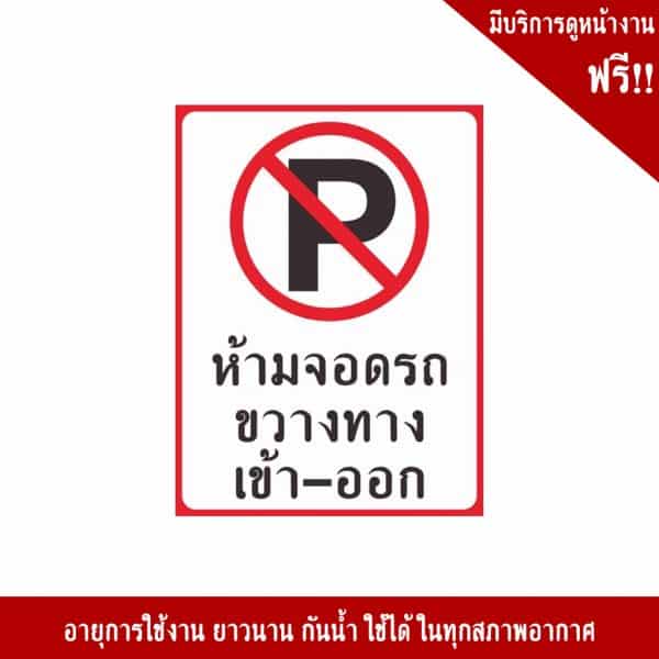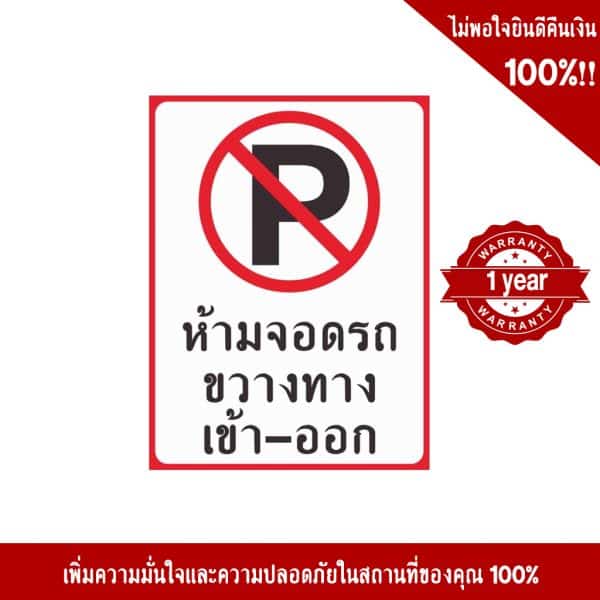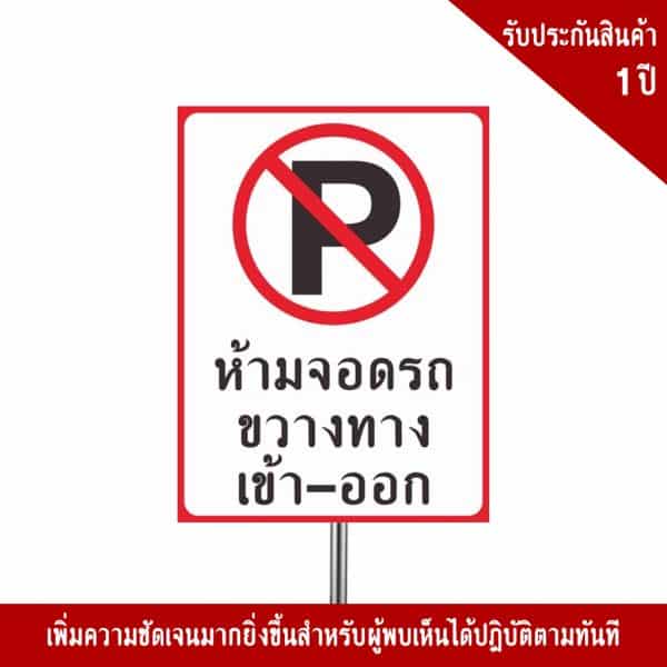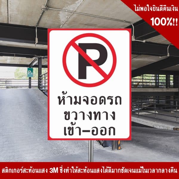 - ป้ายห้ามจอดรถขวางทางเข้า-ออก อลูมิเนียม หนา 1.2 mm. 20×30 Cm. 3M Safety Grade (รับประกัน 1 ปี)