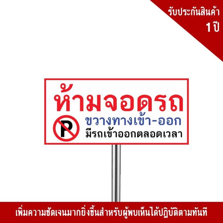 - ป้ายห้ามจอดรถ ขวางทางเข้า-ออก มีรถเข้าออก ตลอดเวลา อลูมิเนียม หนา 1.2 mm. 60×120 Cm. 3M Safety Grade (รับประกัน 1 ปี)