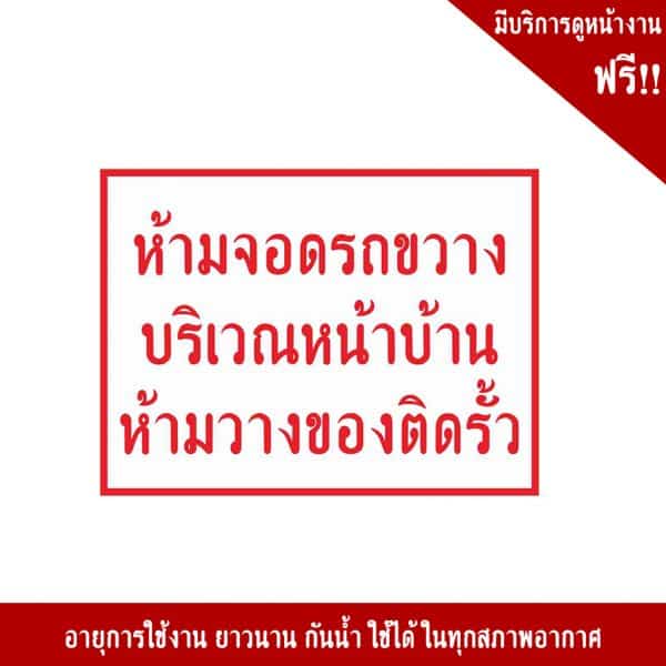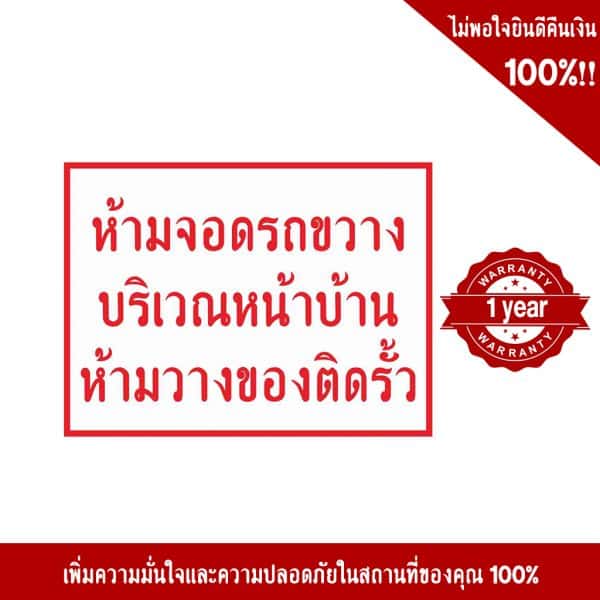 - ป้ายห้ามจอดรถขวางบริเวณหน้าบ้าน ห้ามวางของติดรั้ว อลูมิเนียม หนา 1.2 mm. 20×30 Cm. 3M Safety Grade (รับประกัน 1 ปี)