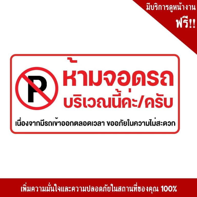 - สถานที่ในบริษัท ที่ต้องการป้ายบ่งบอกที่ห้ามจอดที่ชัดเจนให้กับพนังงาน