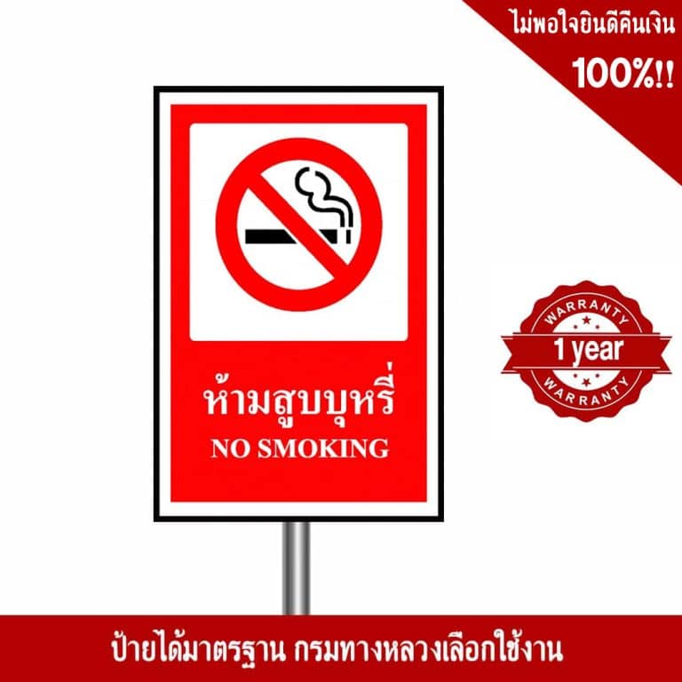 วัสดุ และคุณลักษณะสินค้า ของ ป้ายห้ามสูบบุหรี่