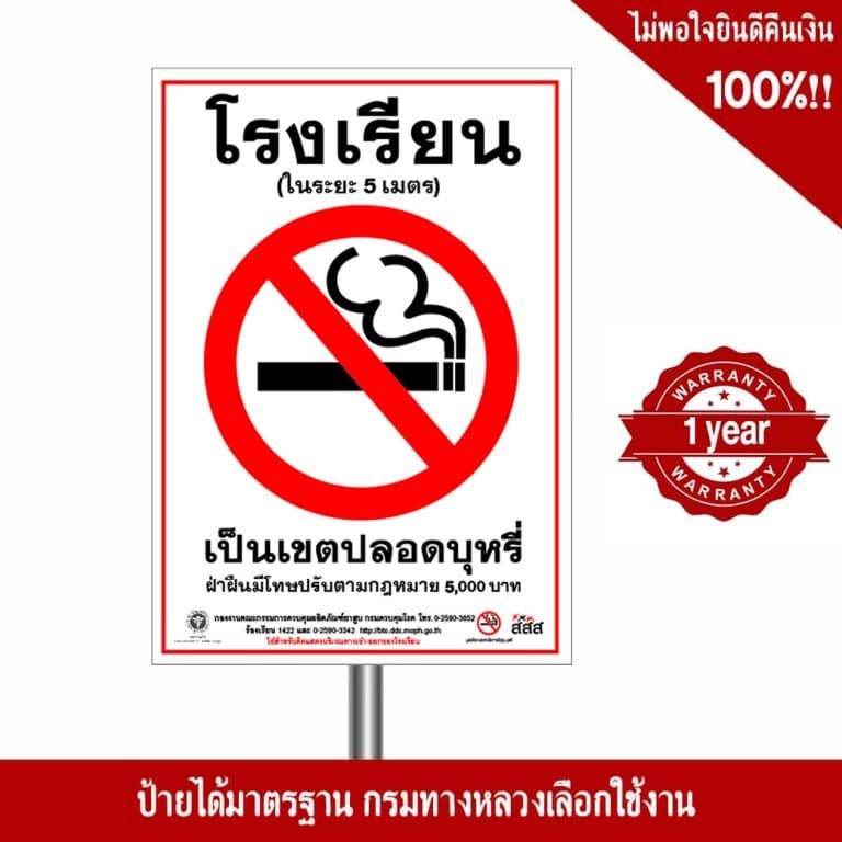 ป้ายโรงเรียนเป็นเขตปลอดบุหรี่ สะท้อนแสง 3M