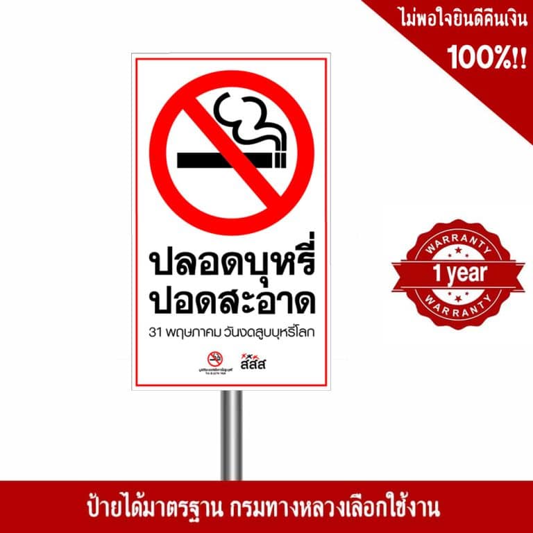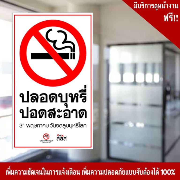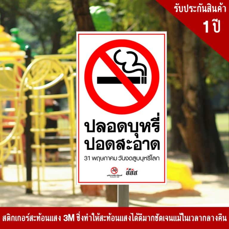 ป้ายปลอดบุหรี่ปอดสะอาด วันงดสูบบุหรี่โลก สะท้อนแสง 3M