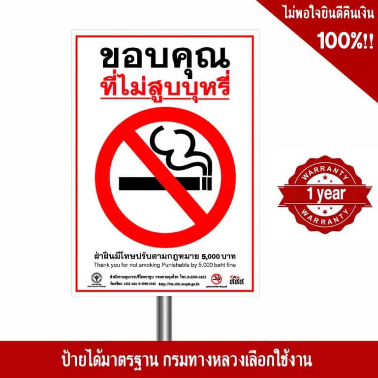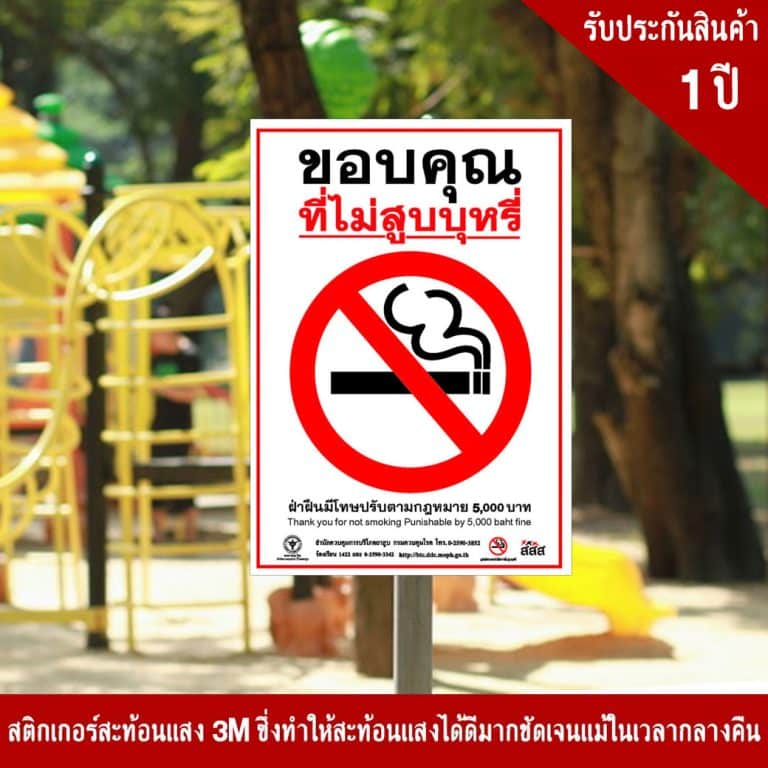 ป้ายขอบคุณที่ไม่สูบบุหรี่ สะท้อนแสง 3M
