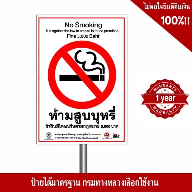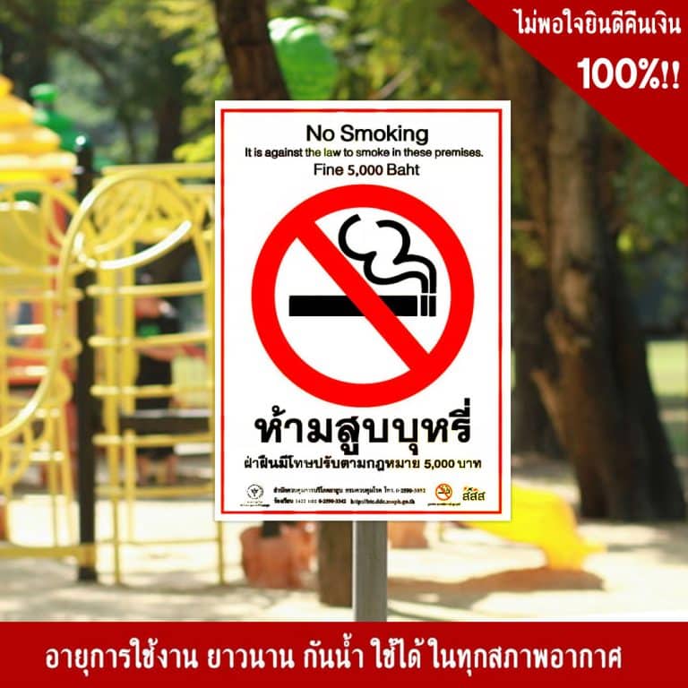 ป้ายห้ามสูบบุหรี่ No Smoking ฝ่าฝืนปรับ 5,000 บาท สะท้อนแสง 3M