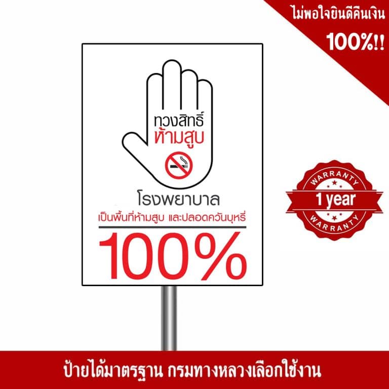 ป้ายโรงพยาบาลเป็นพื้นที่ห้ามสูบ และปลอดควันบุหรี่ สะท้อนแสง 3M