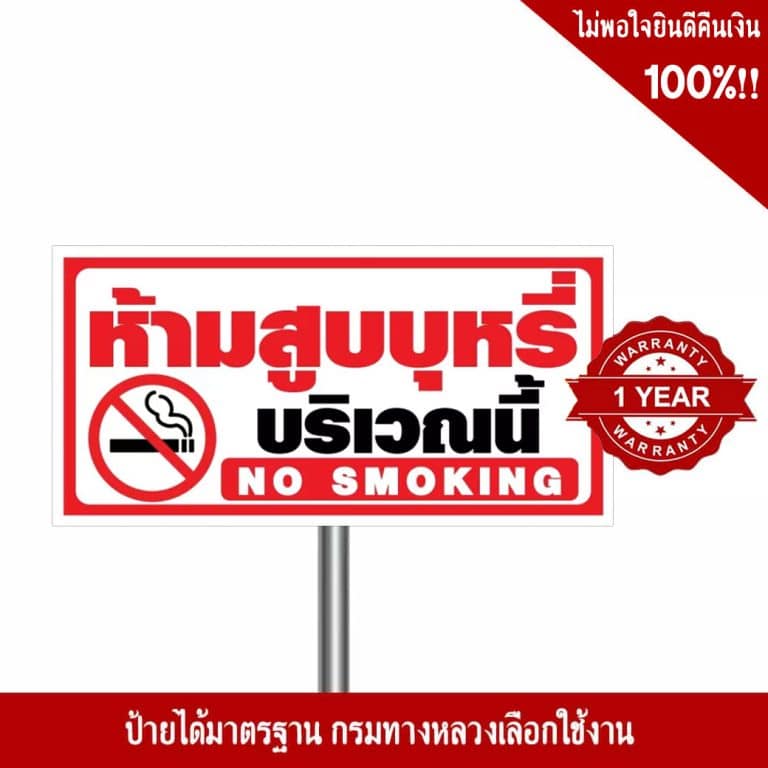 วัสดุ และคุณลักษณะสินค้า ของ ป้ายห้ามสูบบุหรี่