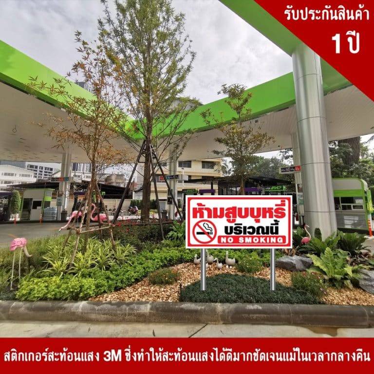 ป้ายห้ามสูบบุหรี่บริเวณนี้ No Smoking สะท้อนแสง 3M