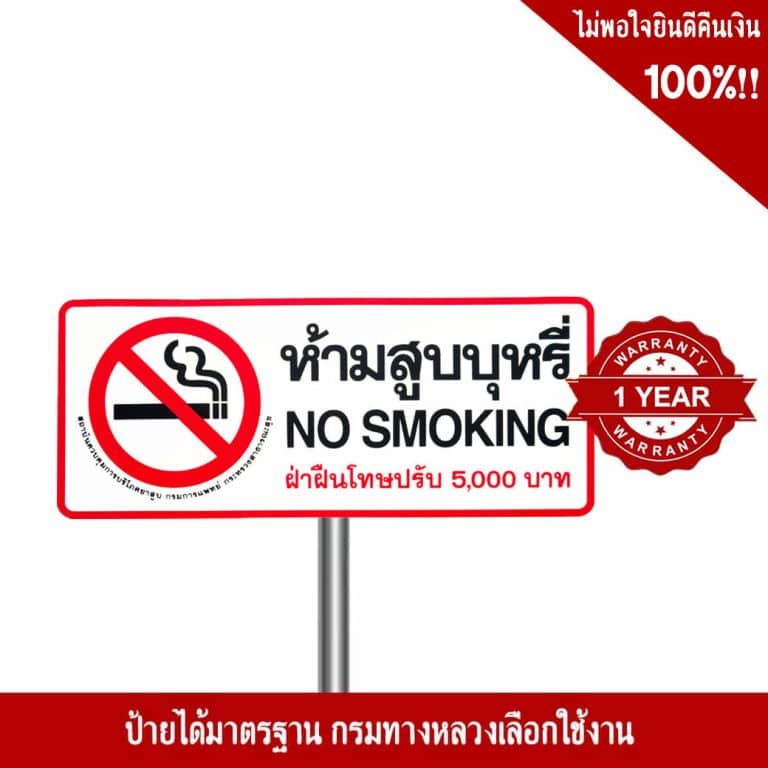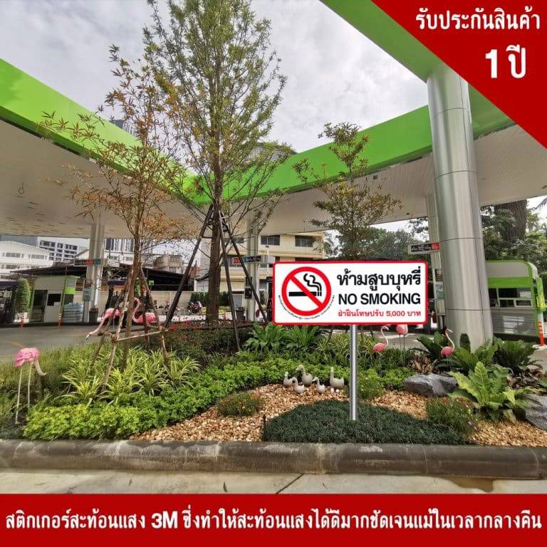 ป้ายห้ามสูบบุหรี่ No Smoking ฝ่าฝืนปรับ 5,000 บาท สะท้อนแสง 3M