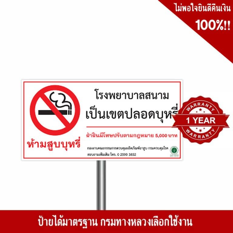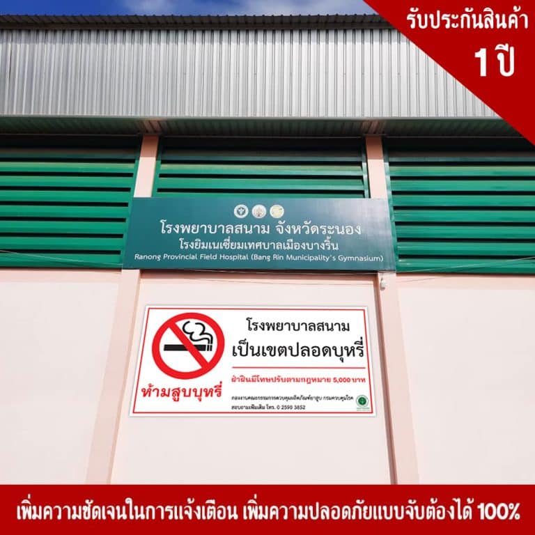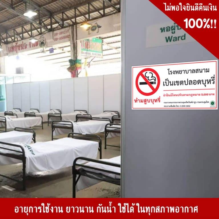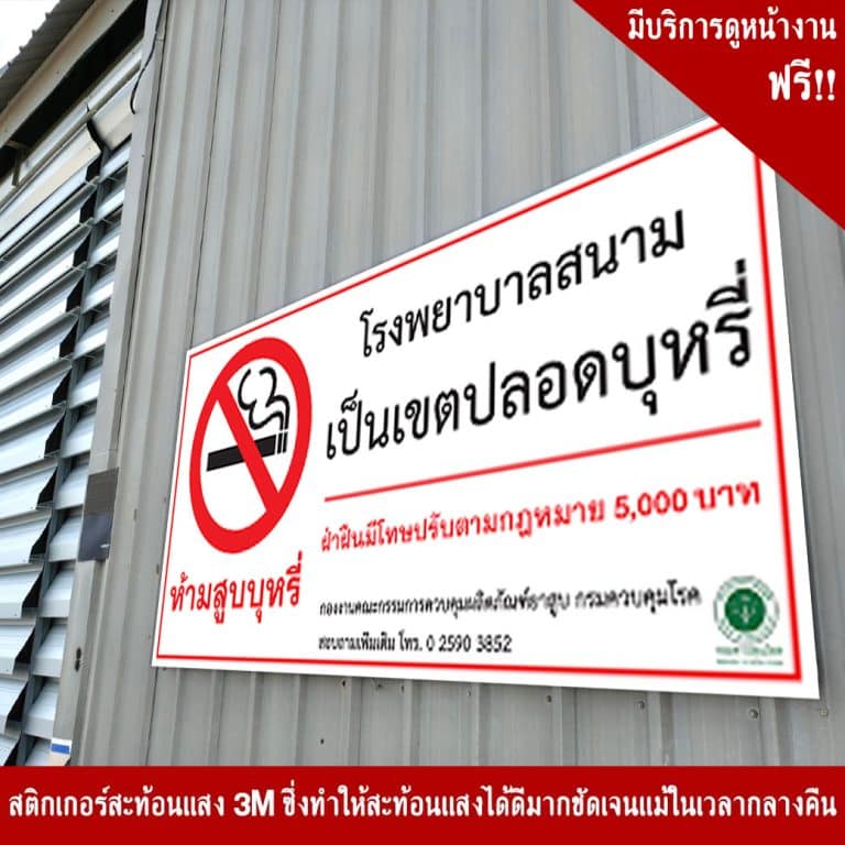 ป้ายห้ามสูบบุหรี่ โรงพยาบาลสนามเป็นเขตปลอดบุหรี่ สะท้อนแสง 3M
