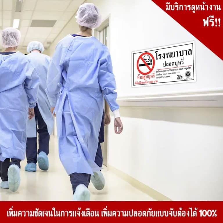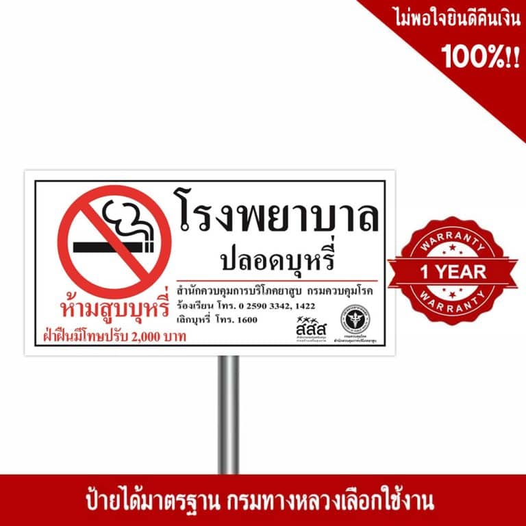 ป้ายห้ามสูบบุหรี่ โรงพยาบาลปลอดบุหรี่ สะท้อนแสง 3M