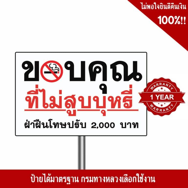 ป้ายขอบคุณที่ไม่สูบบุหรี่ สะท้อนแสง 3M