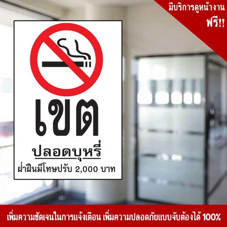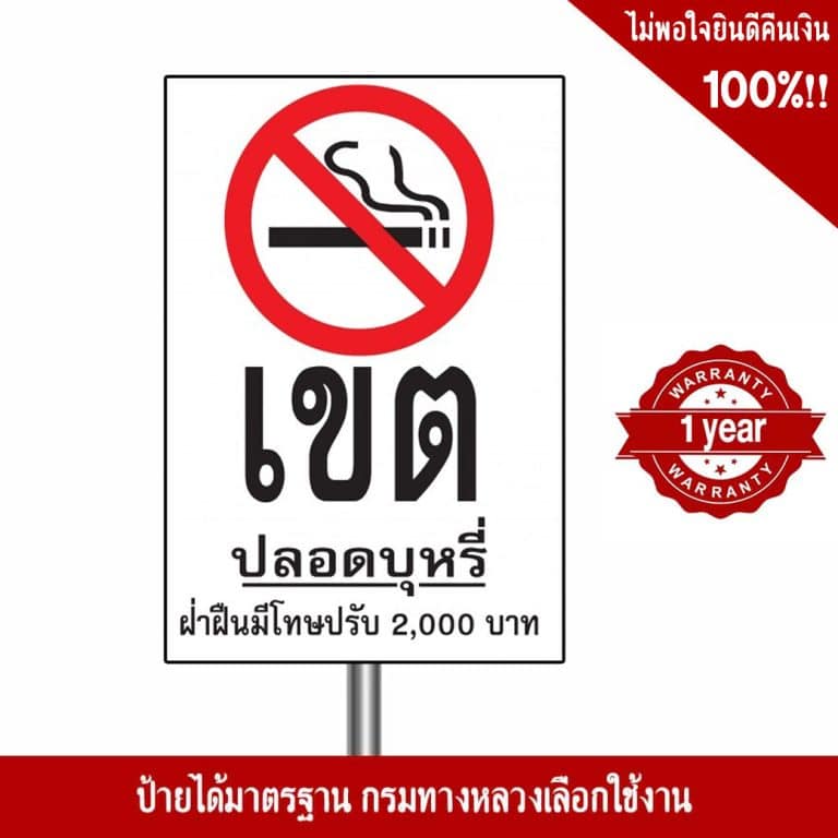 ป้ายเขตปลอดบุหรี่ ฝ่าฝืนปรับ 2,000 บาท สะท้อนแสง 3M