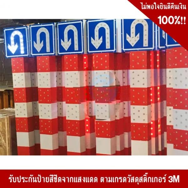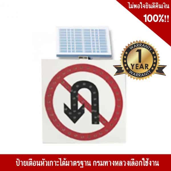 - ป้ายเตือนหัวเกาะ ห้ามกลับรถทางซ้าย สะท้อนแสง 3M