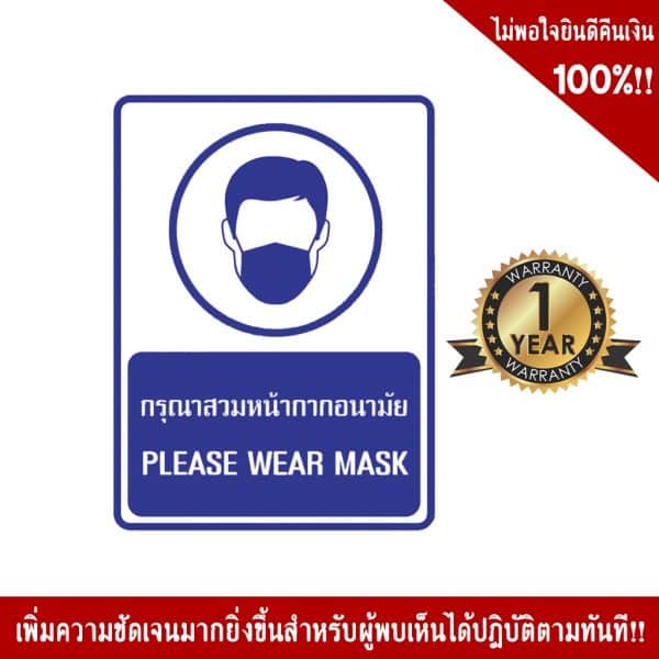 ป้ายกรุณาสวมหน้ากากอนามัย เพิ่มสัญลักษณ์ที่โดดเด่น และความชัดเจน ลดการแพร่เชื้อโรคในสถานที่ได้ถึง 10 เท่า!!