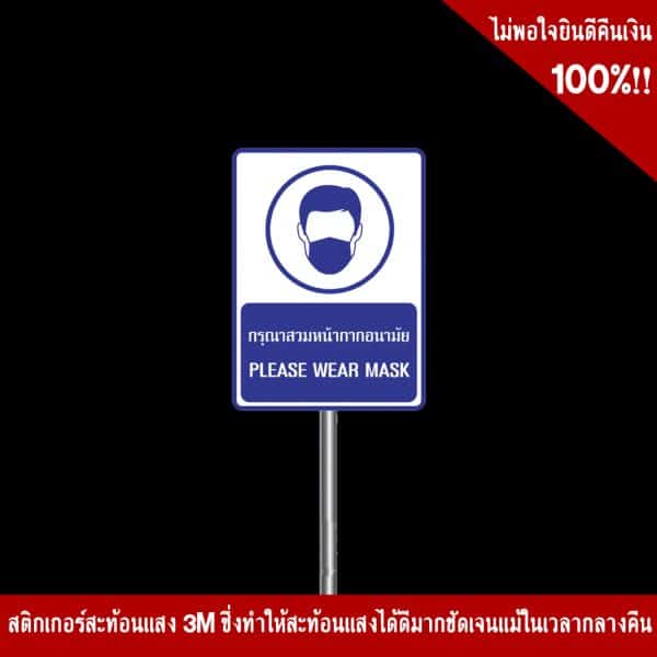 ป้ายกรุณาสวมหน้ากากอนามัย NN-24 สะท้อนแสง 3M