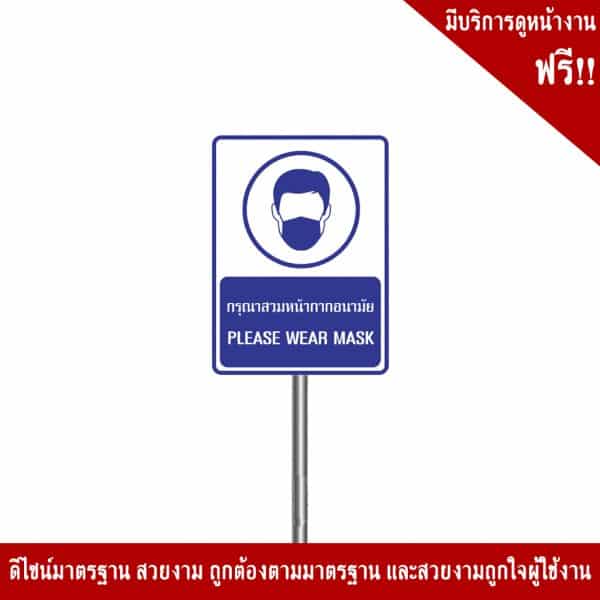- ป้ายกรุณาสวมหน้ากากอนามัย อลูมิเนียม หนา 1.2 mm. 20×30 Cm. 3M Safety Grade (รับประกัน 1 ปี)