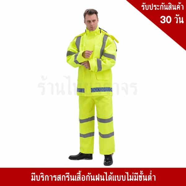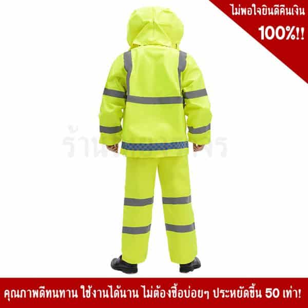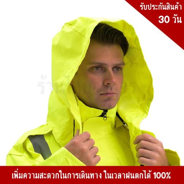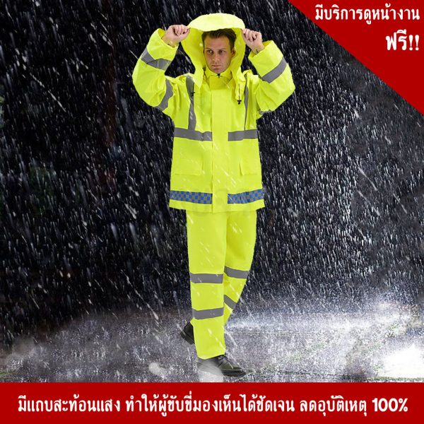 ชุดกันฝน มีแถบสะท้อนแสง ซึ่งทำให้ สามารถมองเห็นชัดขึ้นในเวลากลางคืน เพิ่มความปลอดภัยในการใช้งานได้ 99.99%