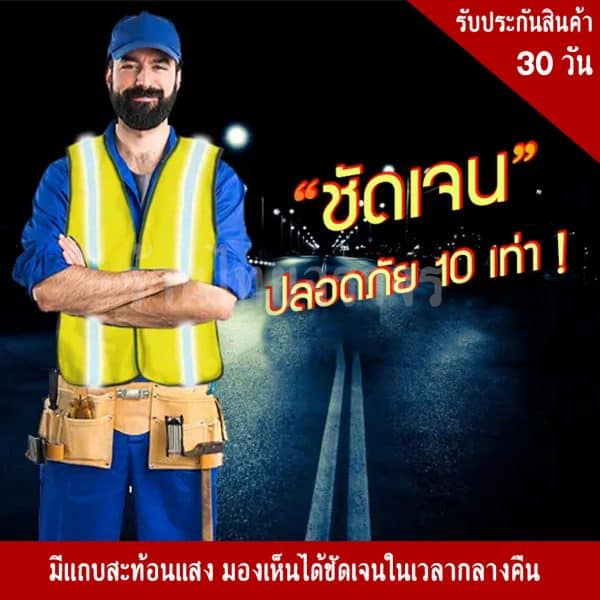 เสื้อจราจรสะท้อนแสง เพิ่มความปลอดภัยให้คุณในระหว่างปฏิบัติงานในเวลากลางคืน ลดอุบัติเหตุได้ 100% !!