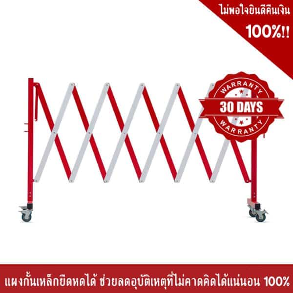 - แผงกั้นเหล็กยืดหดได้ กว้าง 250 cm. สูง 110 cm. สีขาว-แดง