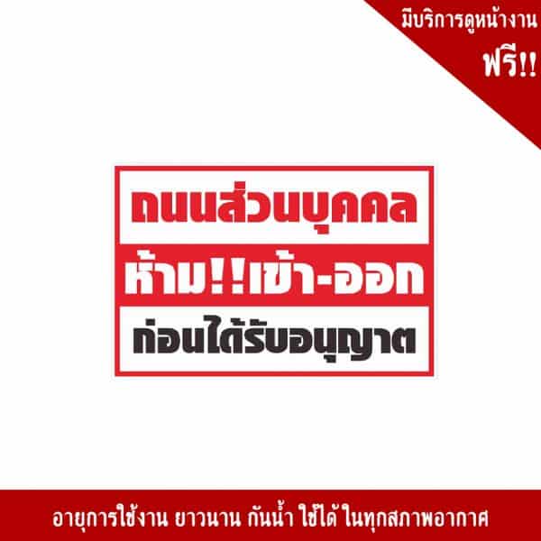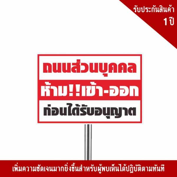 - ป้ายถนนส่วนบุคคลห้ามเข้า-ออกก่อนได้รับอนุญาต อลูมิเนียม หนา 1.2 mm. 20×30 Cm. 3M Safety Grade (รับประกัน 1 ปี)