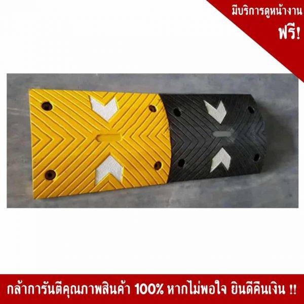ชื่อสินค้า : ยางชะลอความเร็วขนาด 50x40x 5 Cm. สีเหลือง พร้อมแถบสะท้อนแสง รูปลูกศร