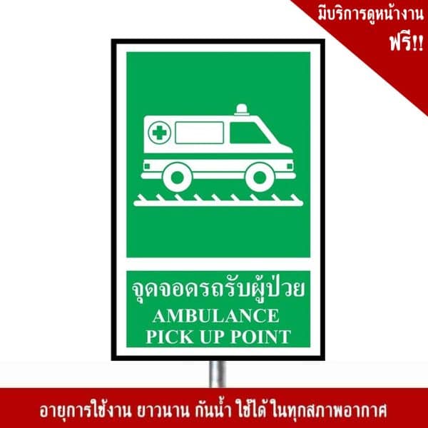 - ป้ายจุดจอดรถรับผู้ป่วย อลูมิเนียม หนา 1.2 mm. 20×30 Cm. 3M Safety Grade (รับประกัน 1 ปี)