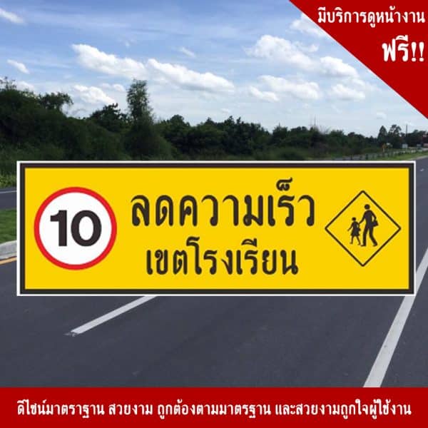 - ป้ายลดความเร็วเขตโรงเรียน อลูมิเนียม หนา 1.2 mm. 25×75 Cm. 3M Safety Grade (รับประกัน 1 ปี)
