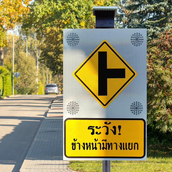 ป้ายไฟกระพริบ ระวัง! ข้างหน้ามีทางแยก ลดอุบัติเหตุตรงทางแยกทันทีที่ติดตั้ง