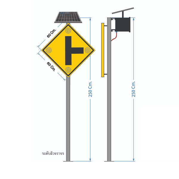 ป้ายไฟกระพริบเตือนทางแยก ขนาด 60×60 Cm. ระบบโซลาร์เซลล์ (ไม่รวมเสา)